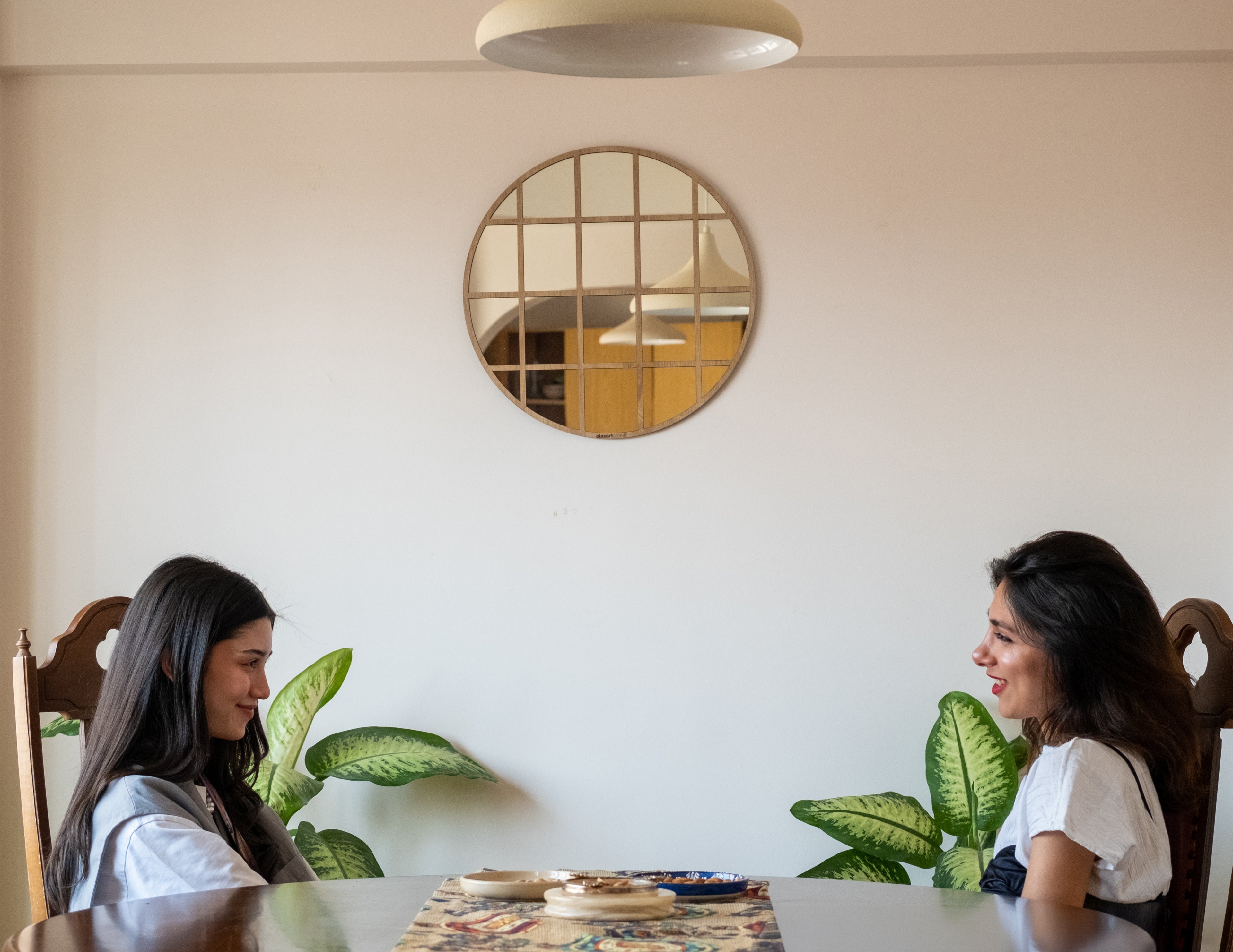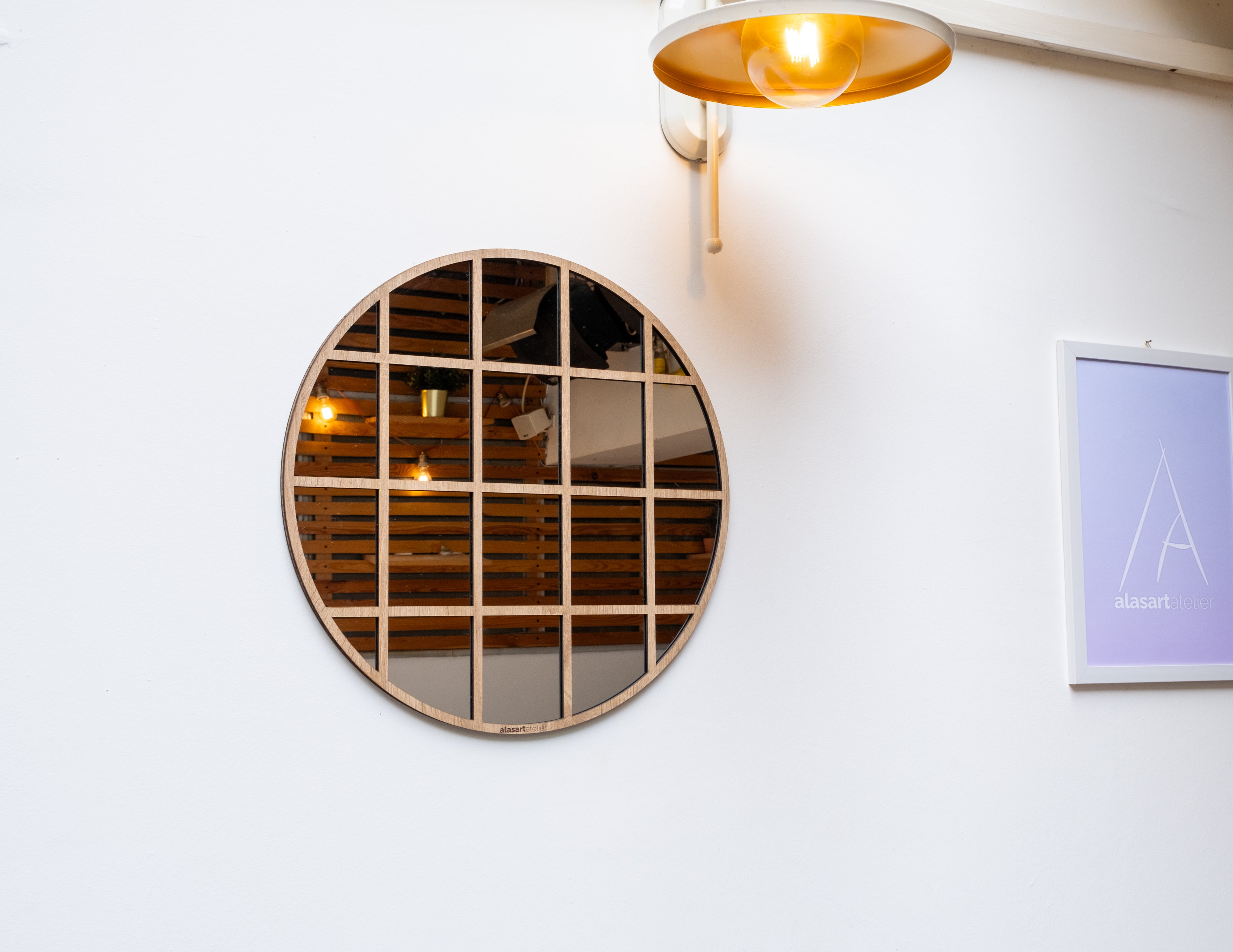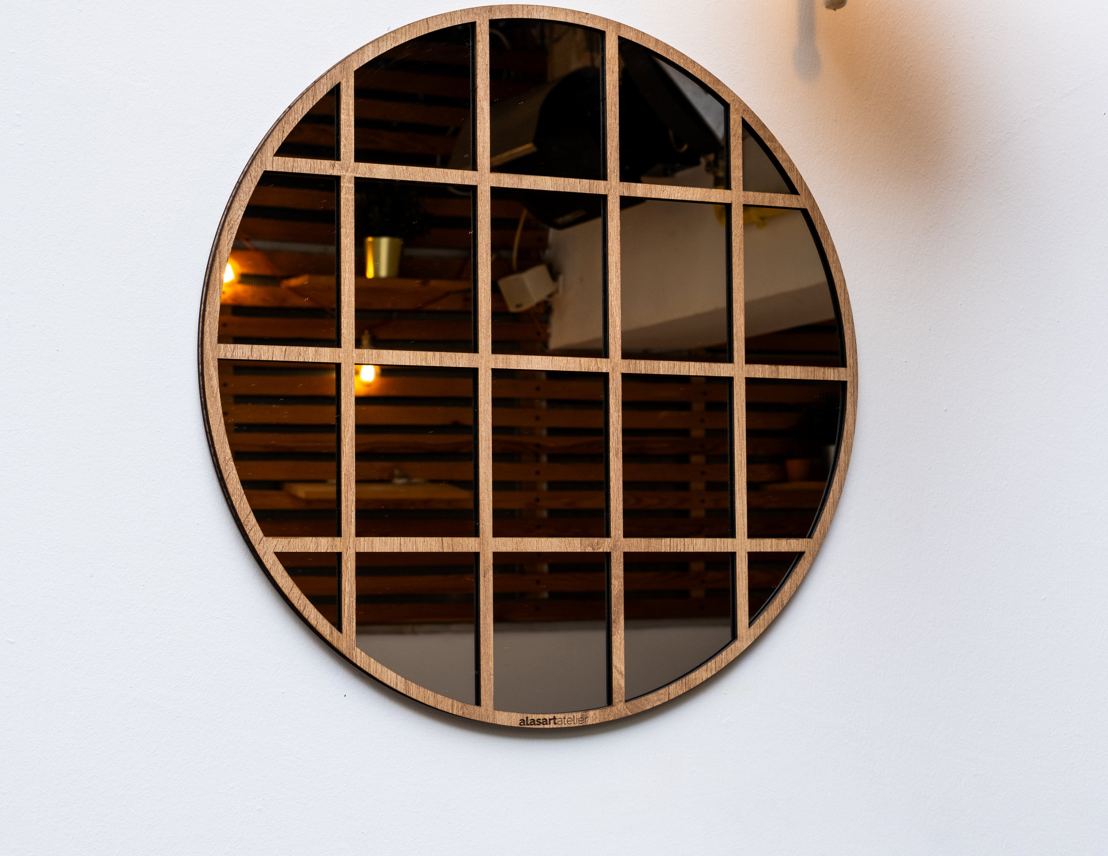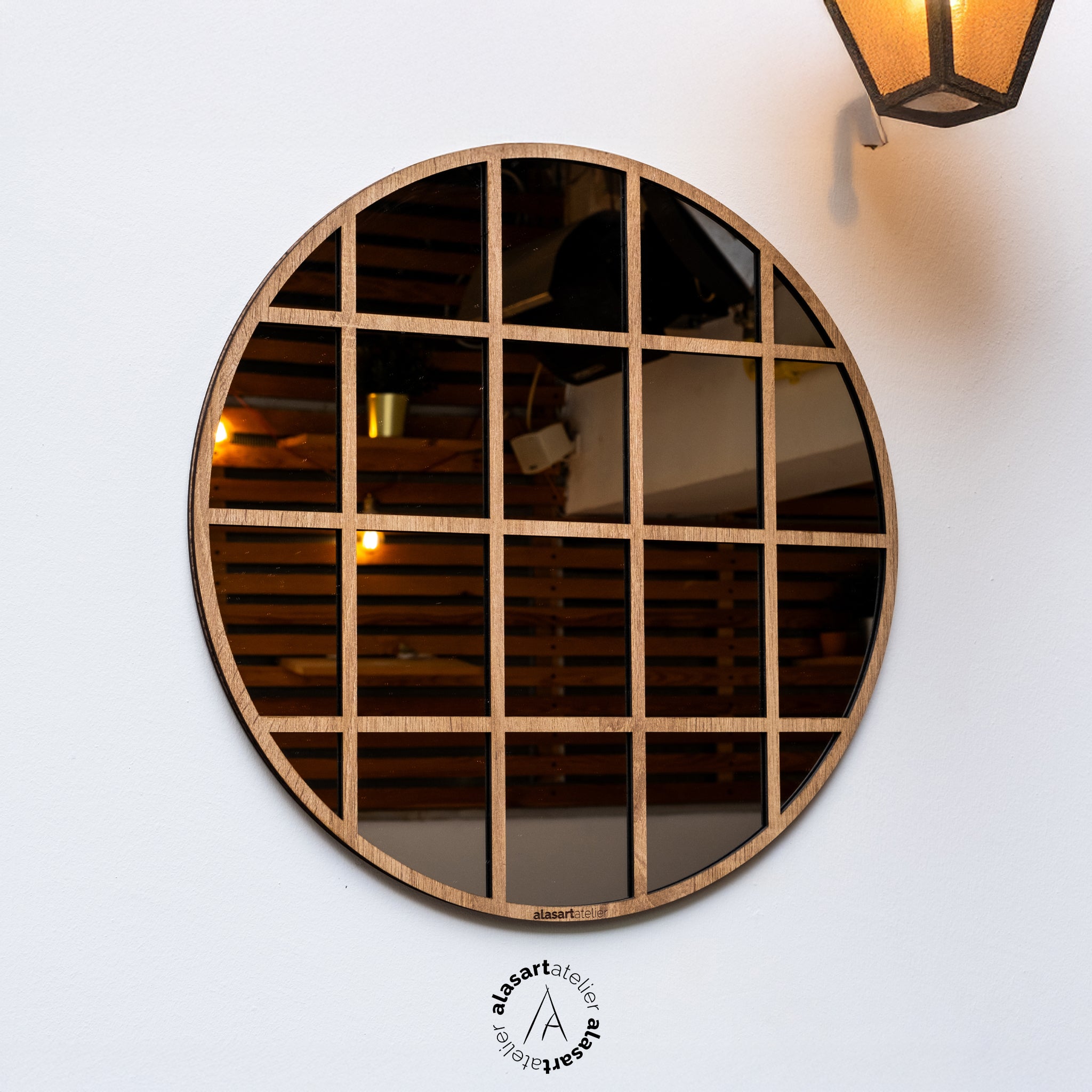 Kare Desenli Yuvarlak Duvar Aynası
