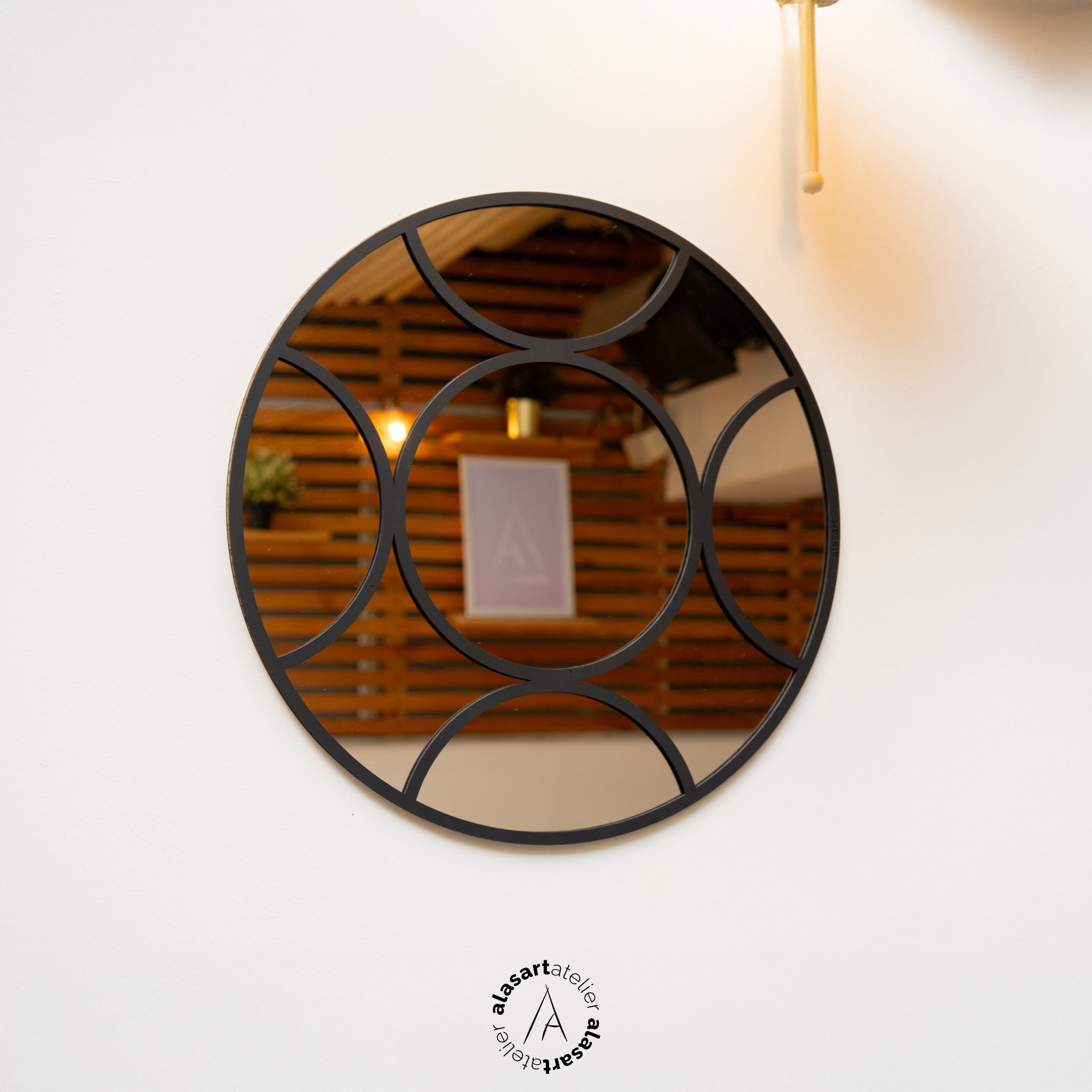 Geometrik Daire Motifli Yuvarlak Duvar Aynası