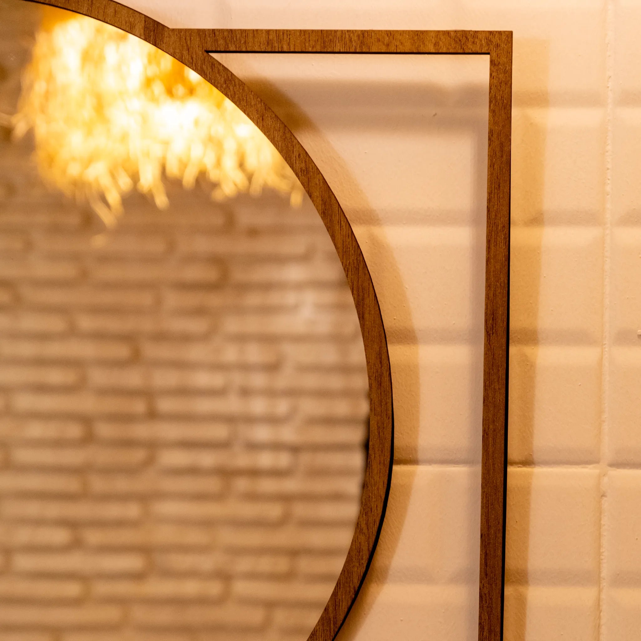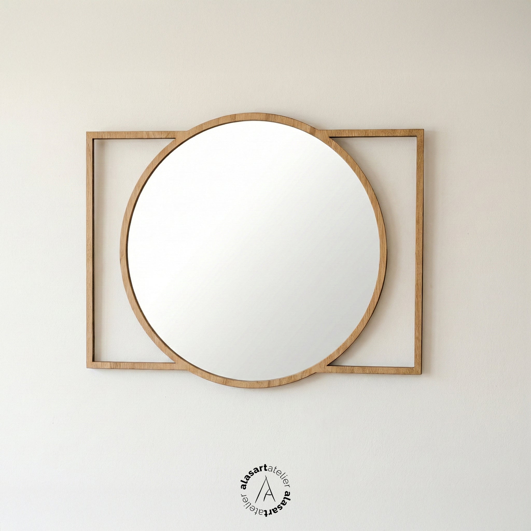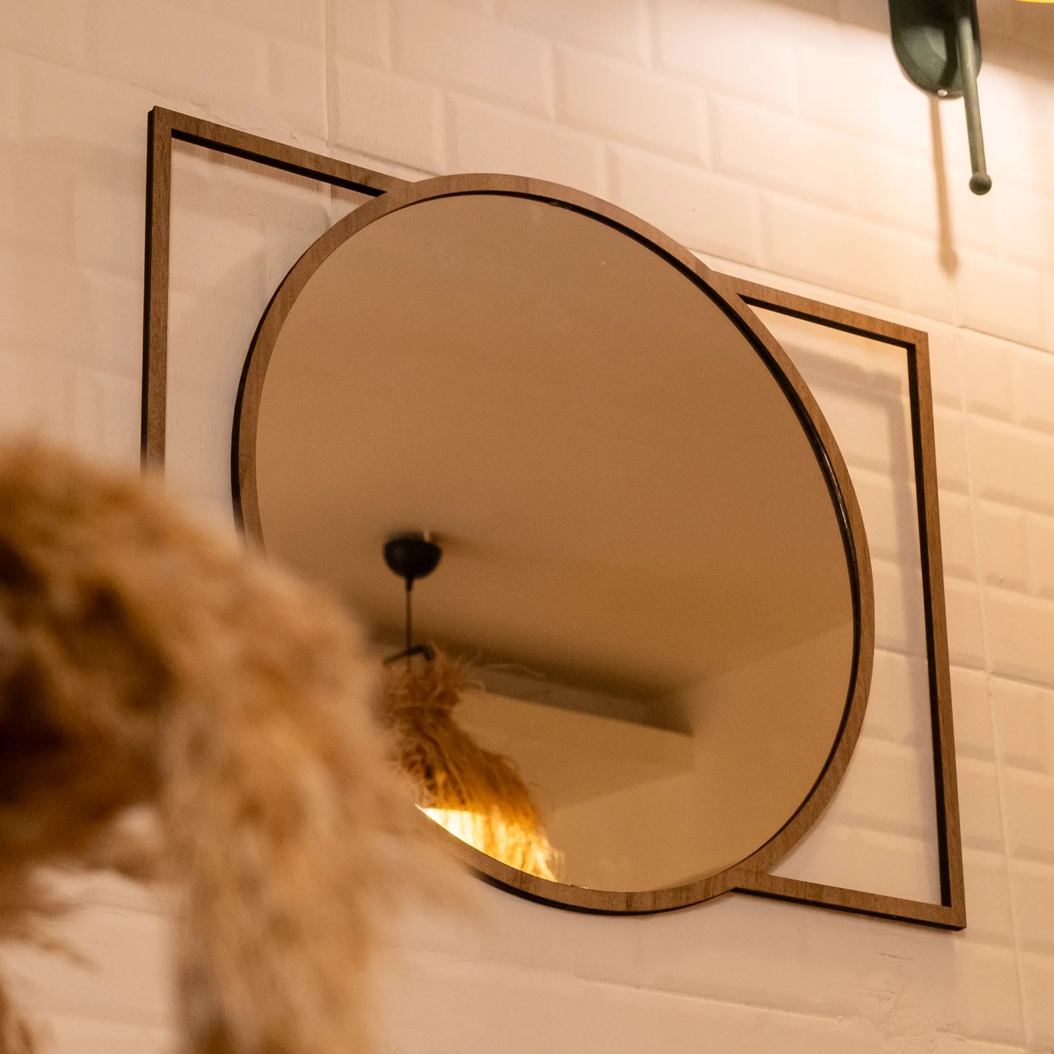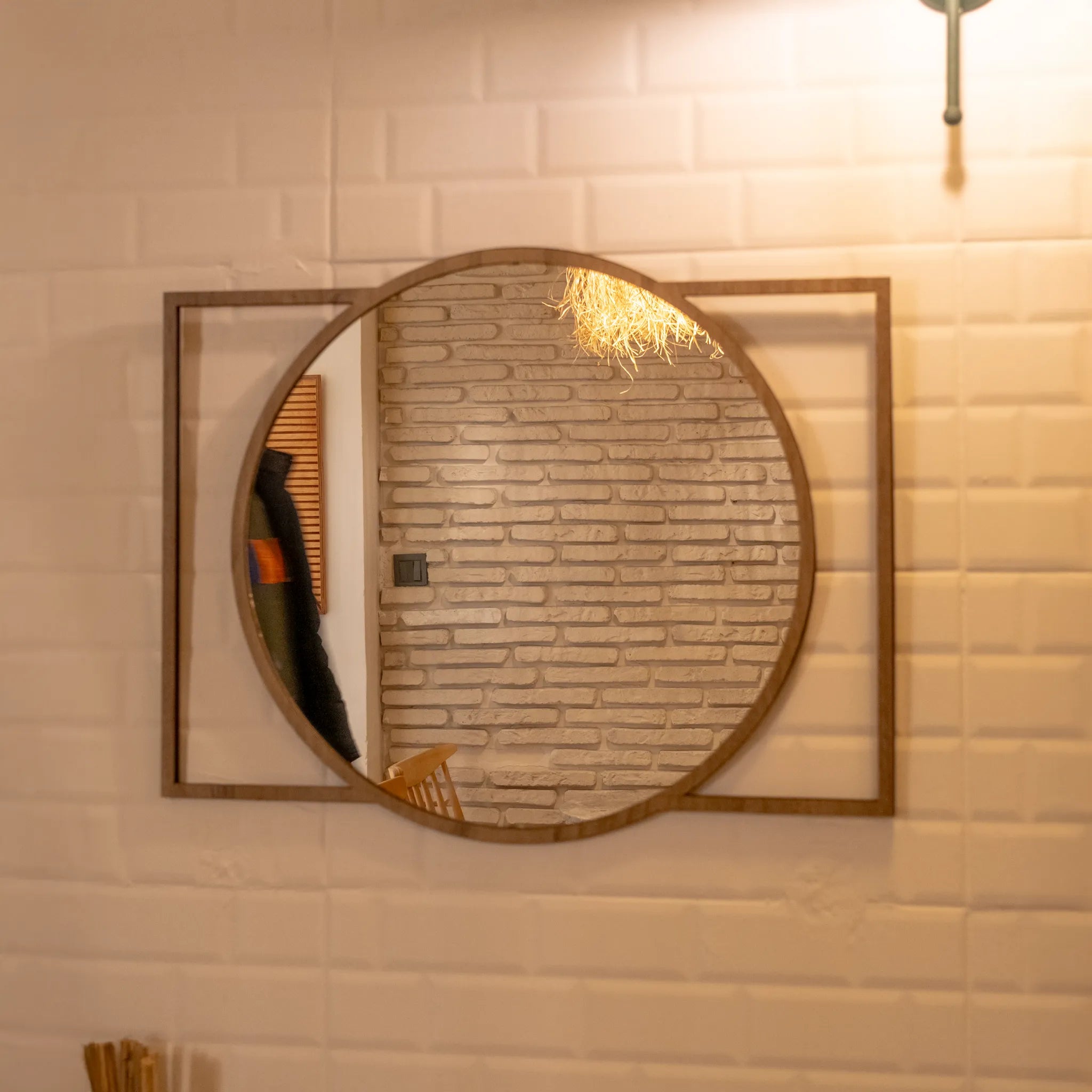 Dikdörtgen Detaylı Yuvarlak Duvar Aynası