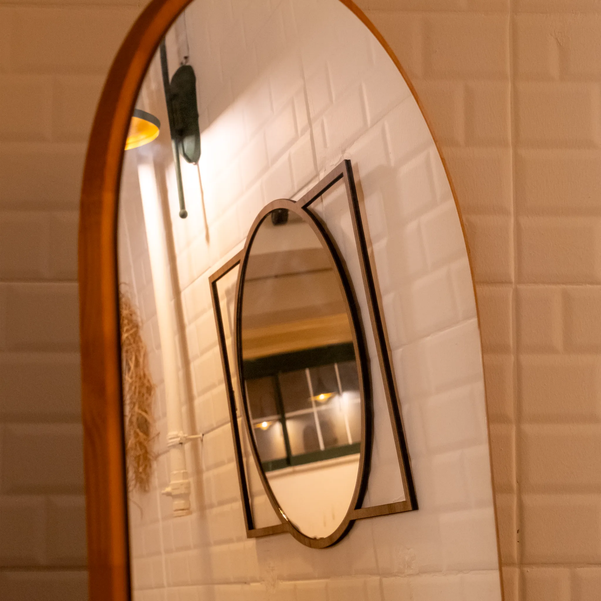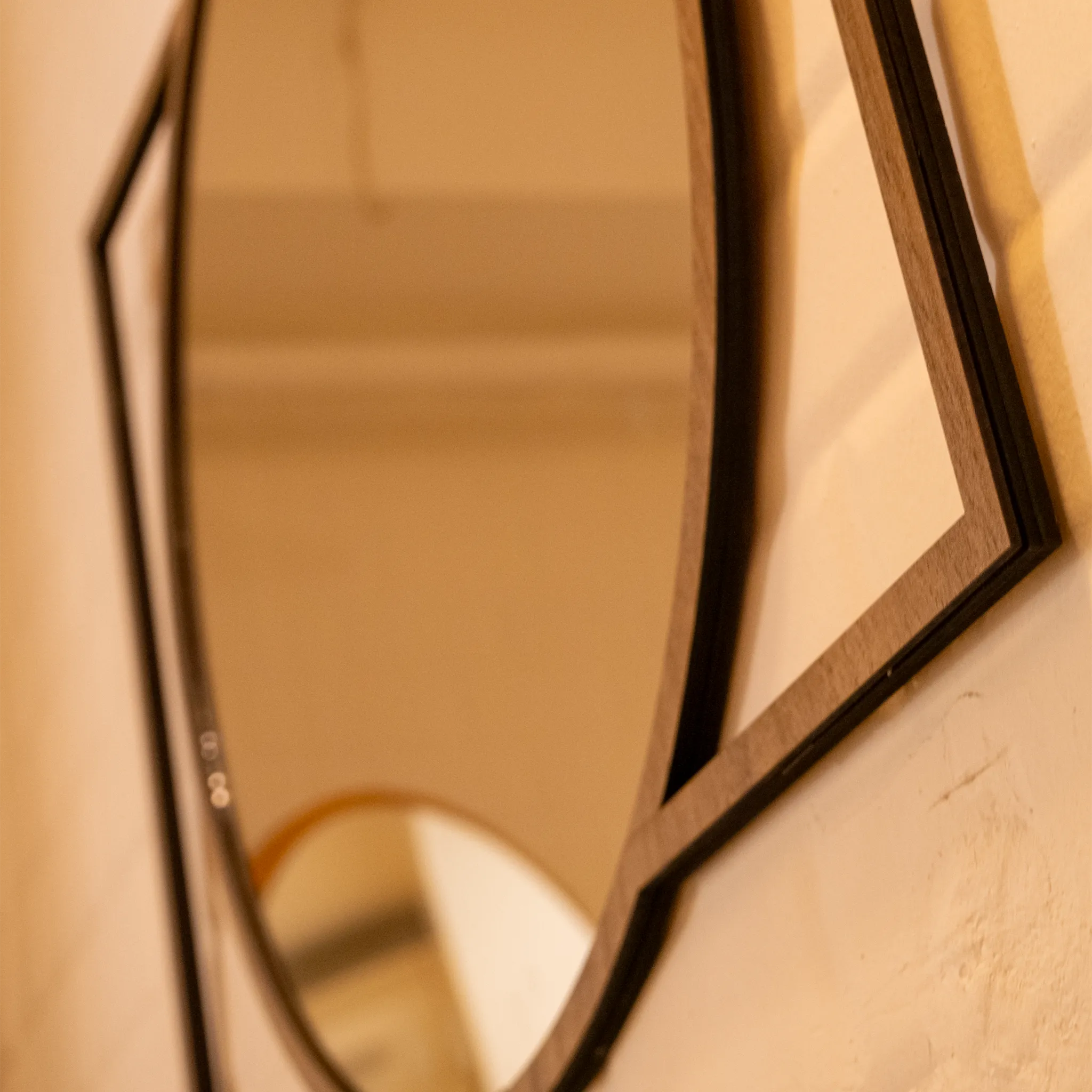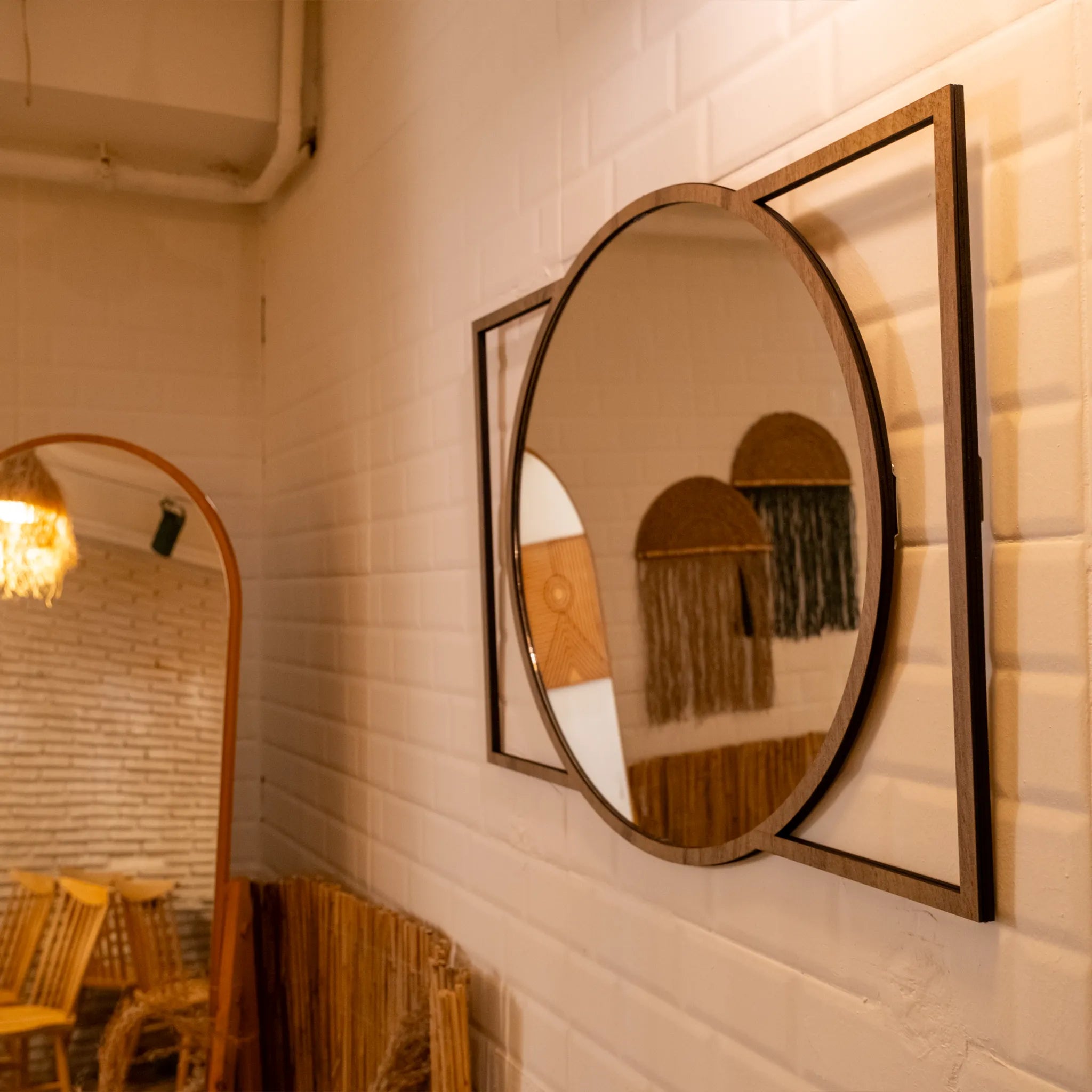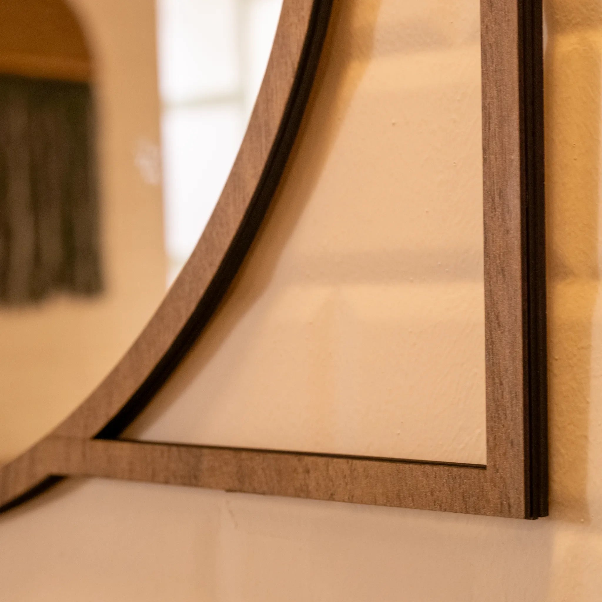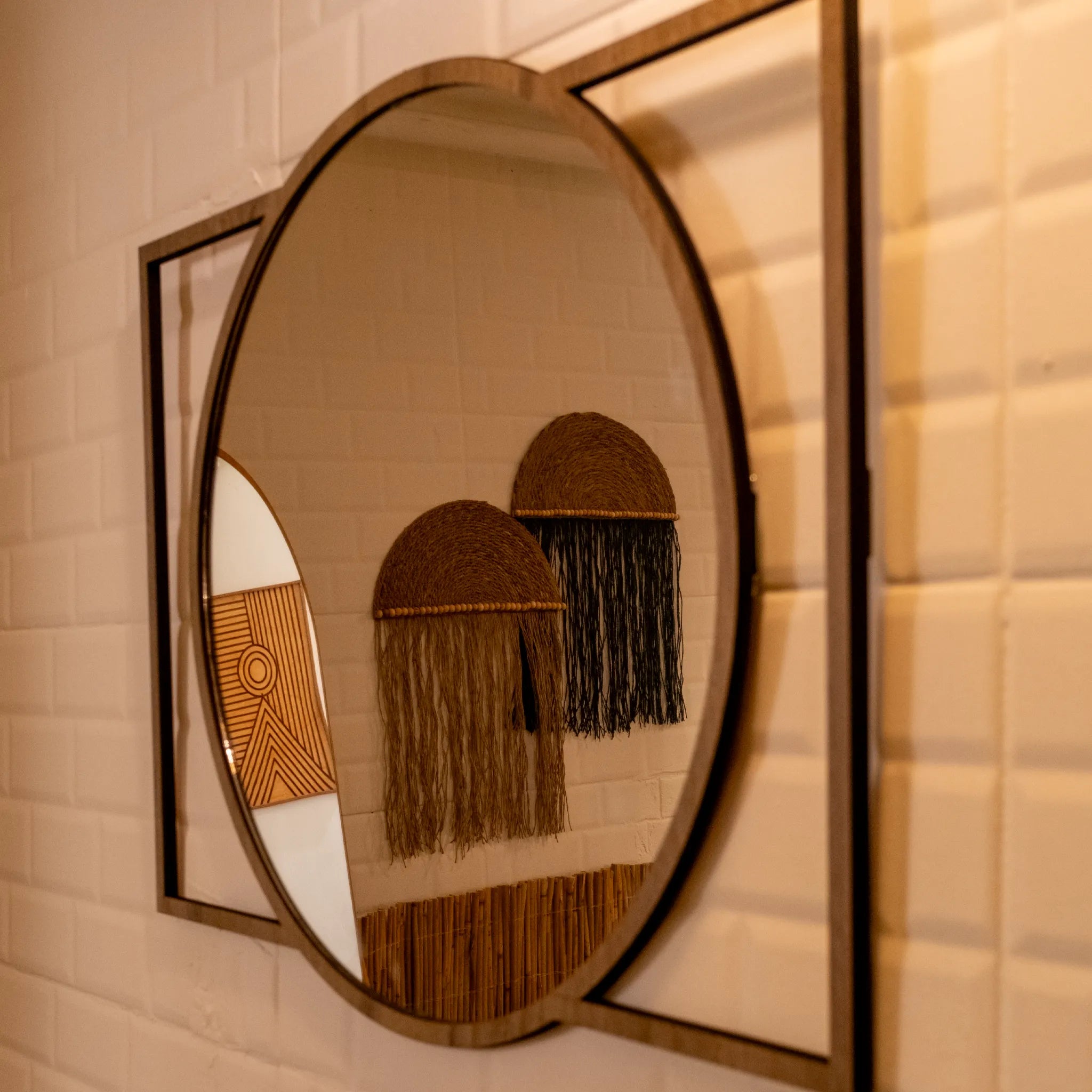 Dikdörtgen Detaylı Yuvarlak Duvar Aynası