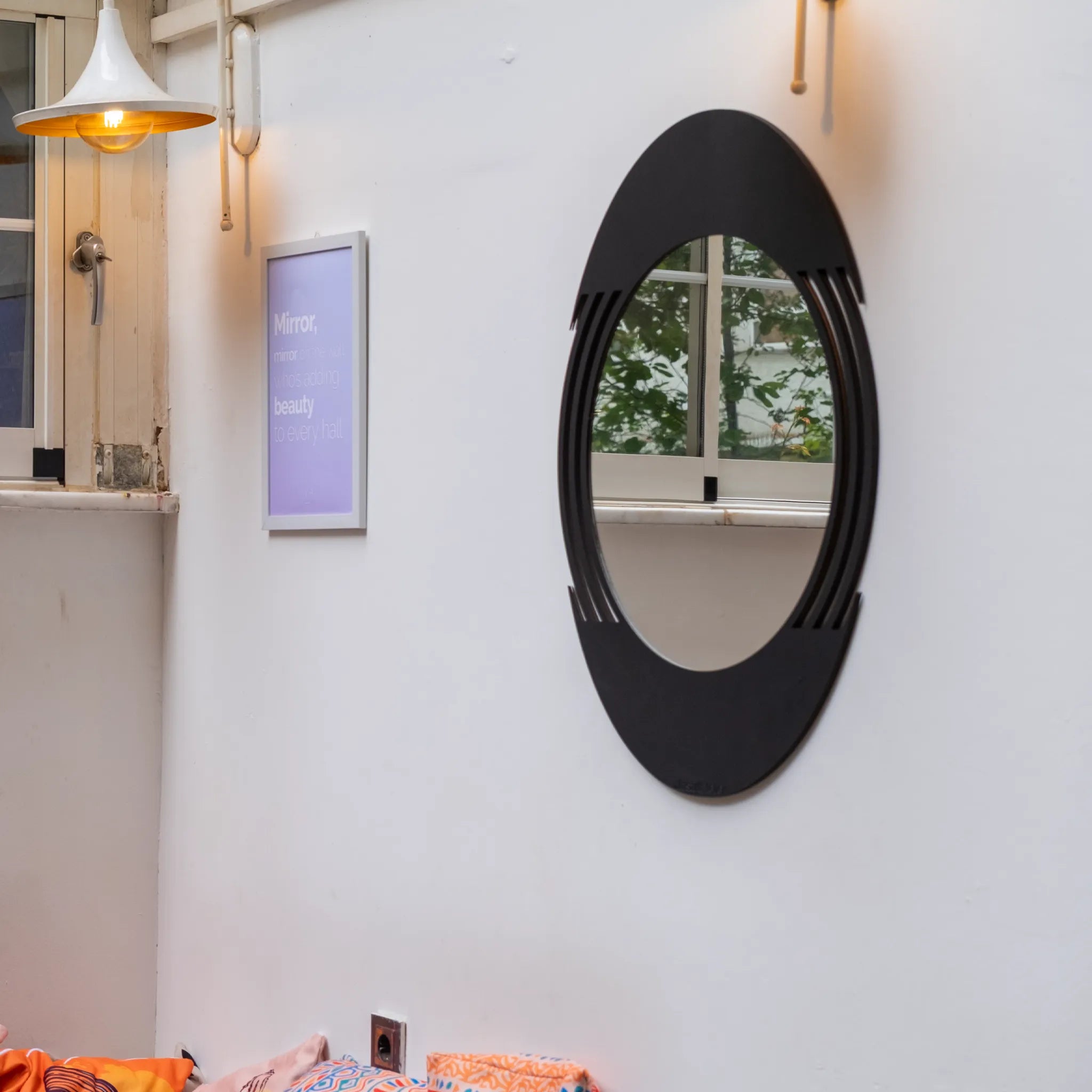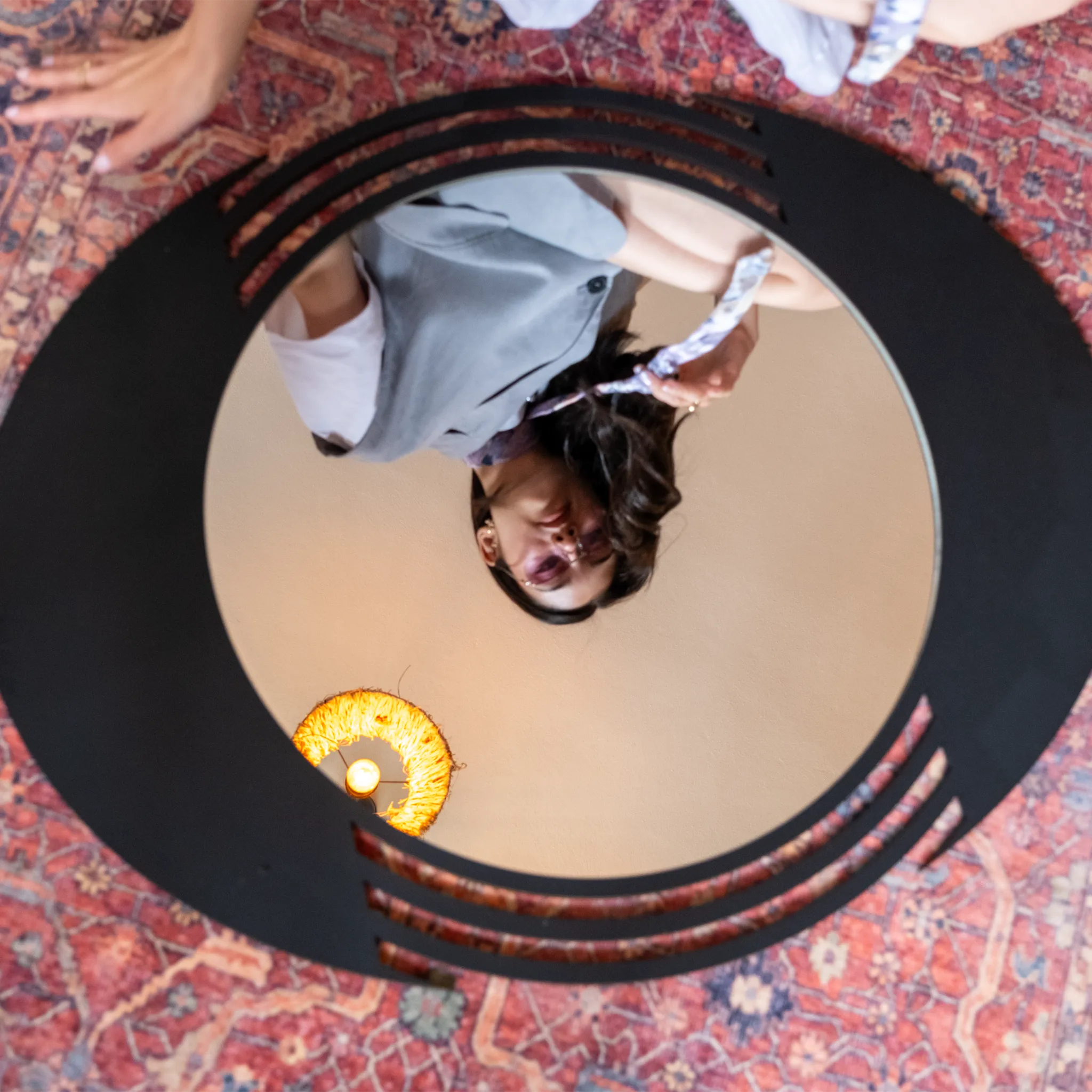 Kenar Çizgili Yuvarlak Duvar Aynası