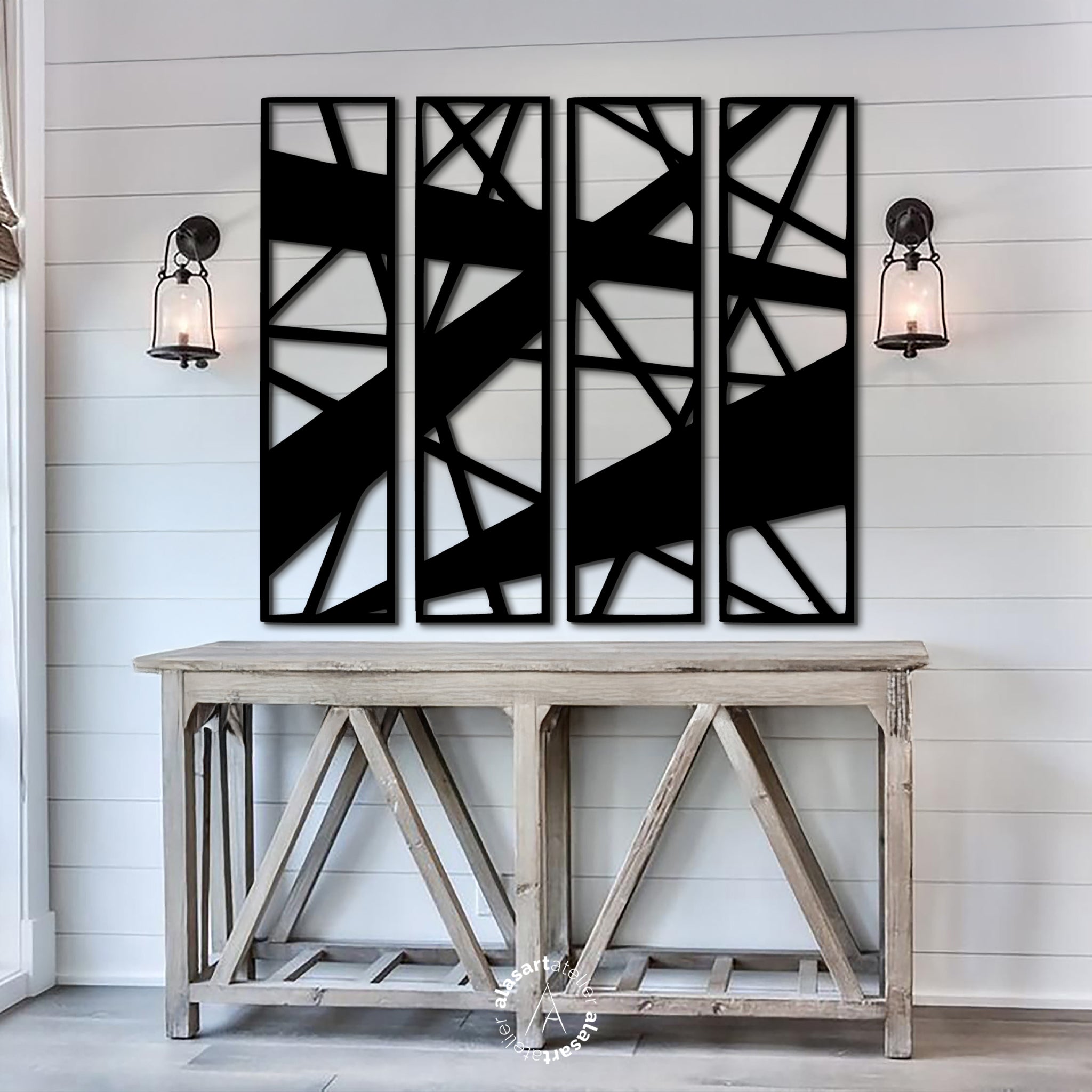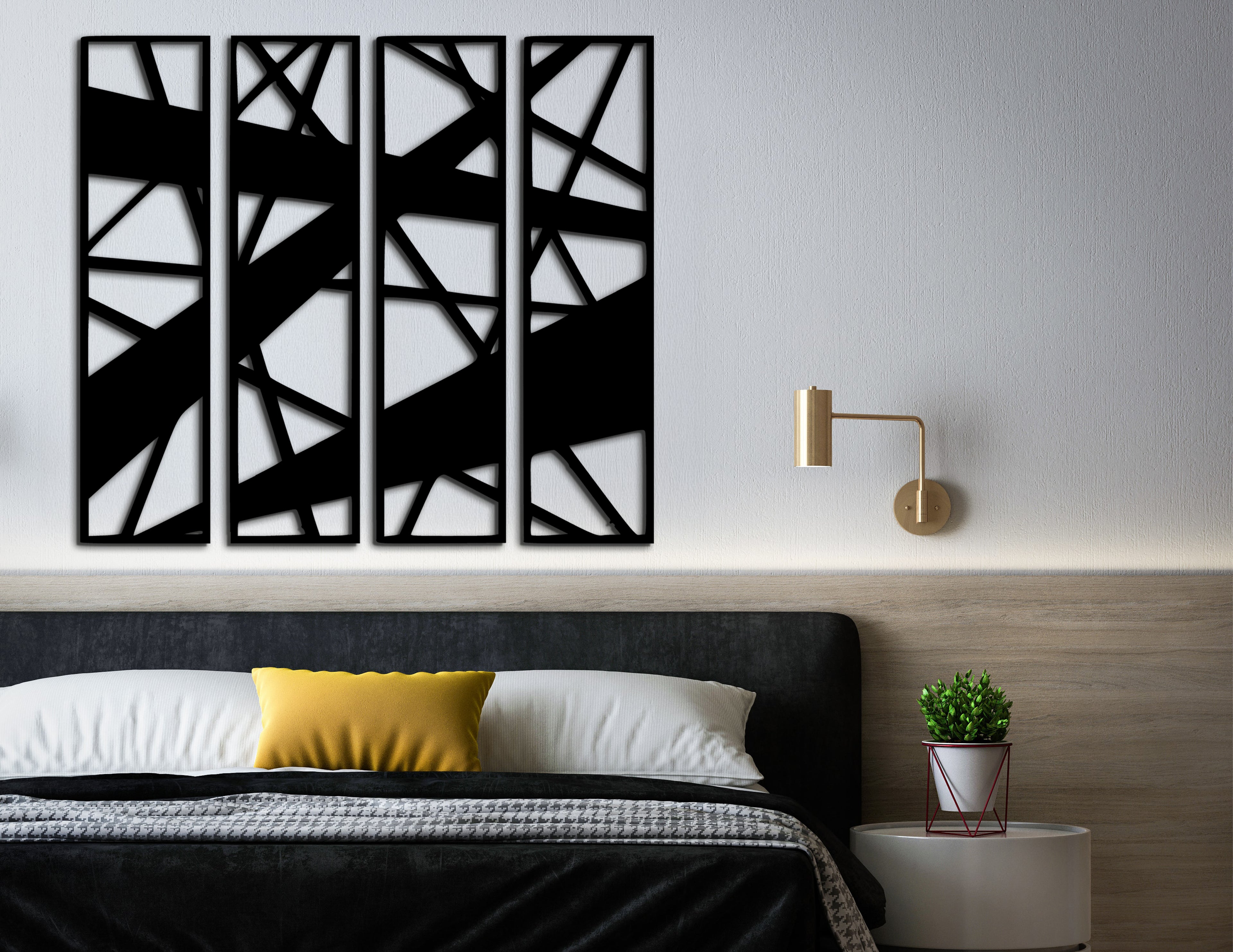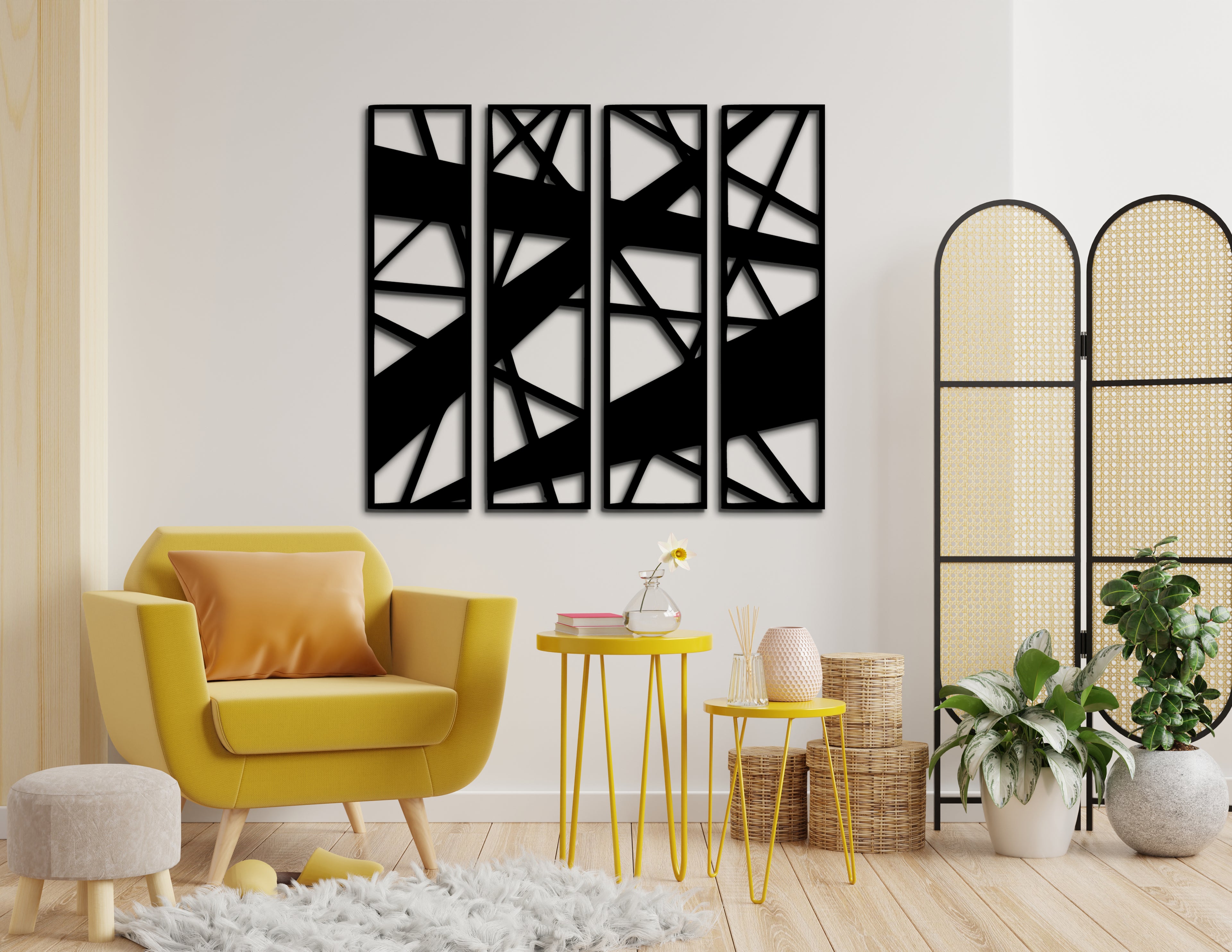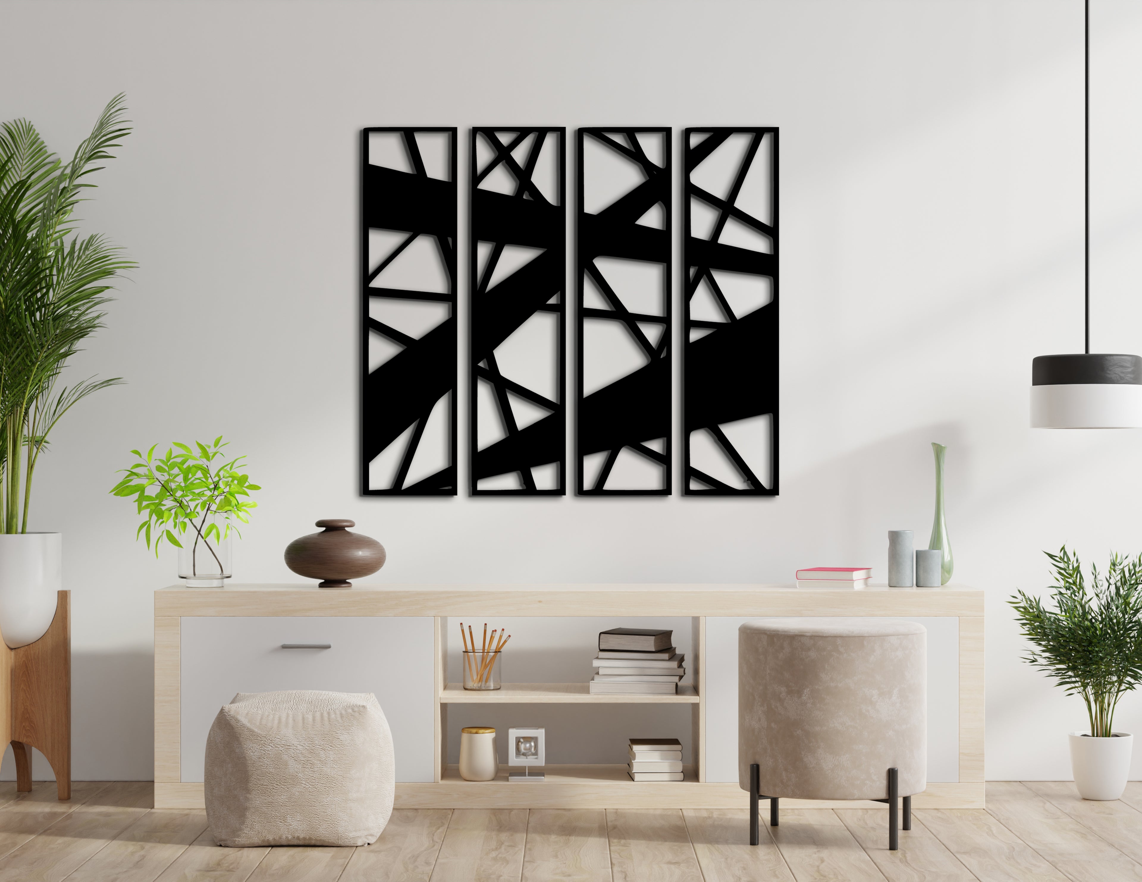 4’lü Geometrik Ahşap Duvar Dekoru Seti